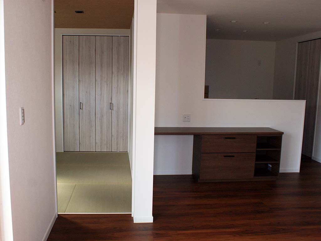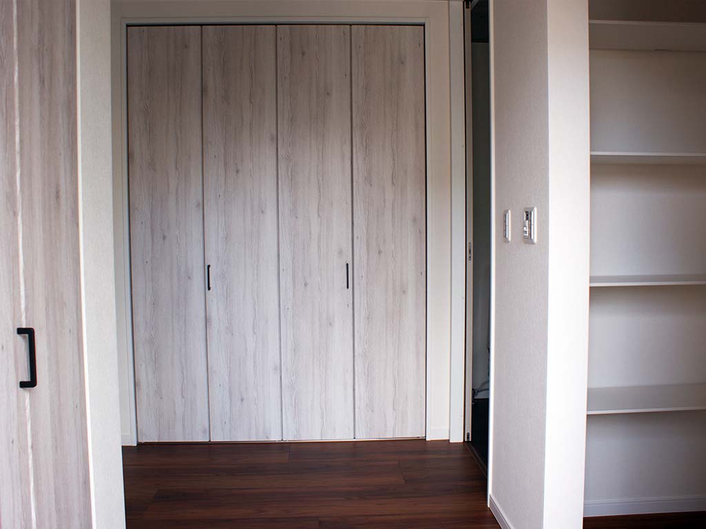 ・2階には5帖の広々としたウォークスルークローゼットを設け、お洋服はもちろん普段使わない雑貨や大きなスーツケースも楽々収納できます