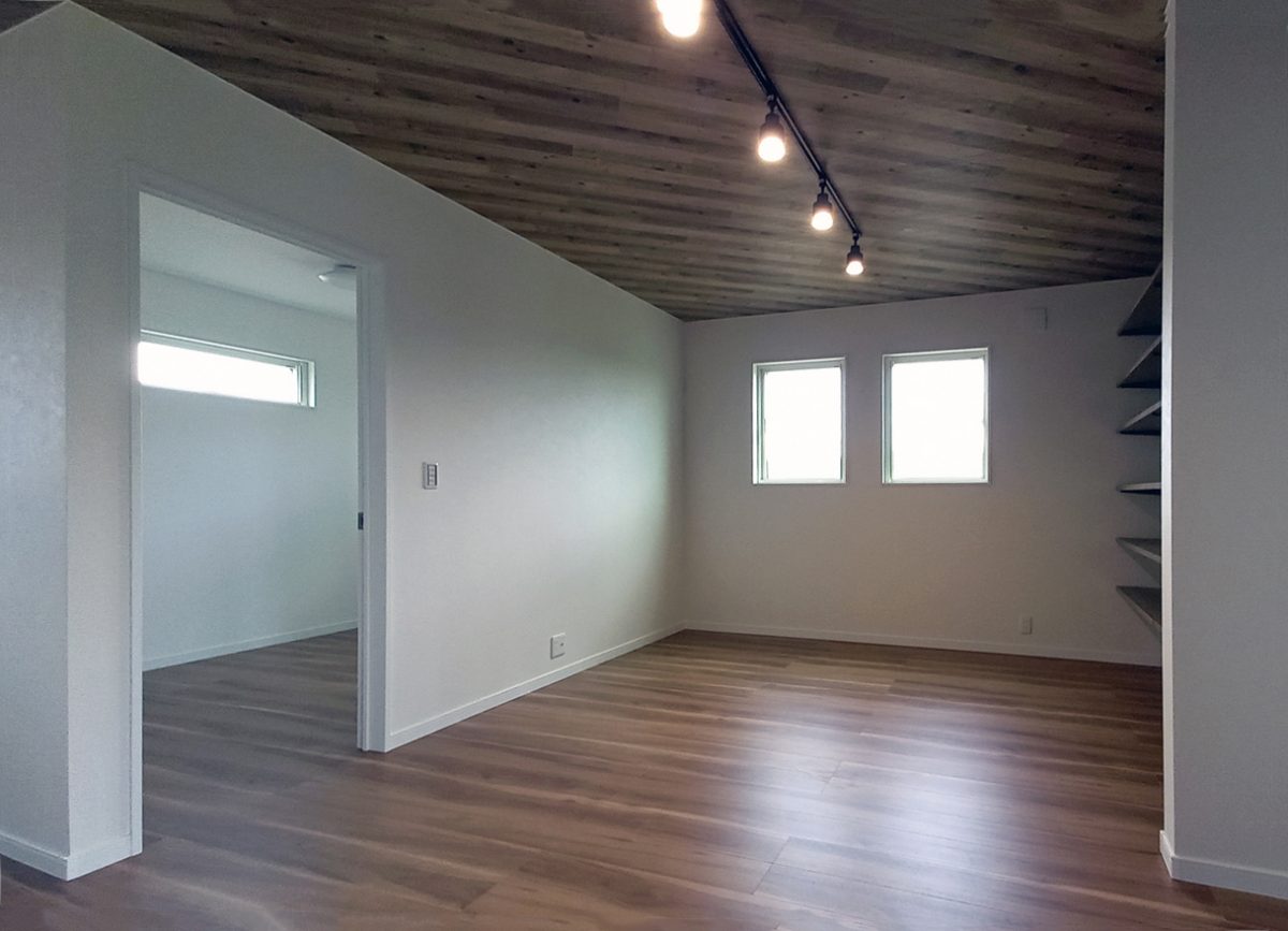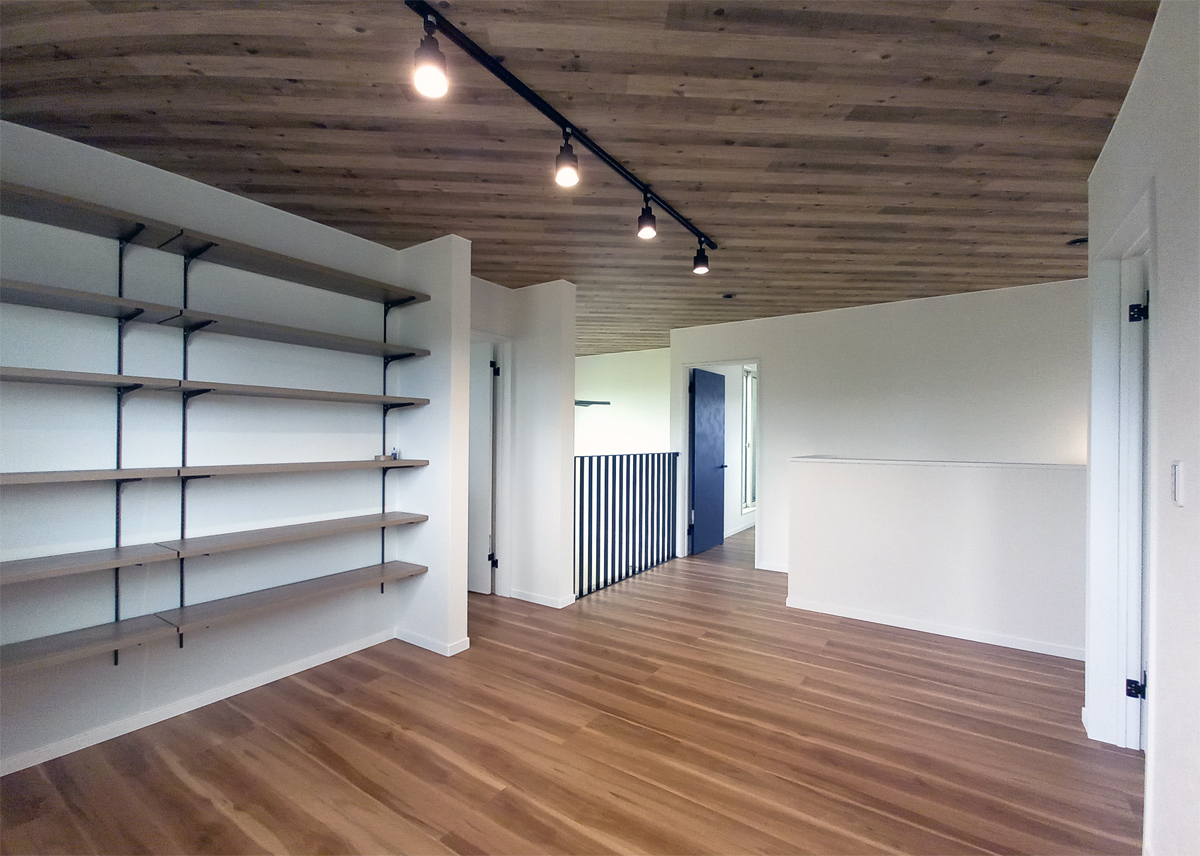 ・二階にあるリビングは広々とくつろげる場所で、趣味の読書を楽しめるよう、造作棚を設置しました