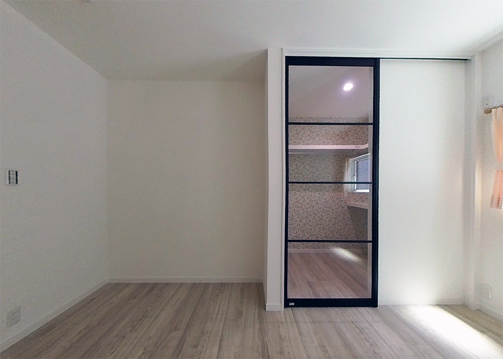 ・ファミリークローゼット、寝室のクローゼットは見せる収納を意識して、壁紙やドアにこだわりました
