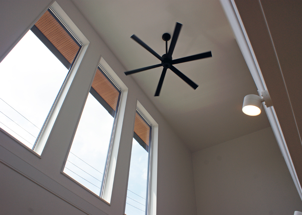 ・吹抜けと大開口窓がある、明るく開放的なリビング